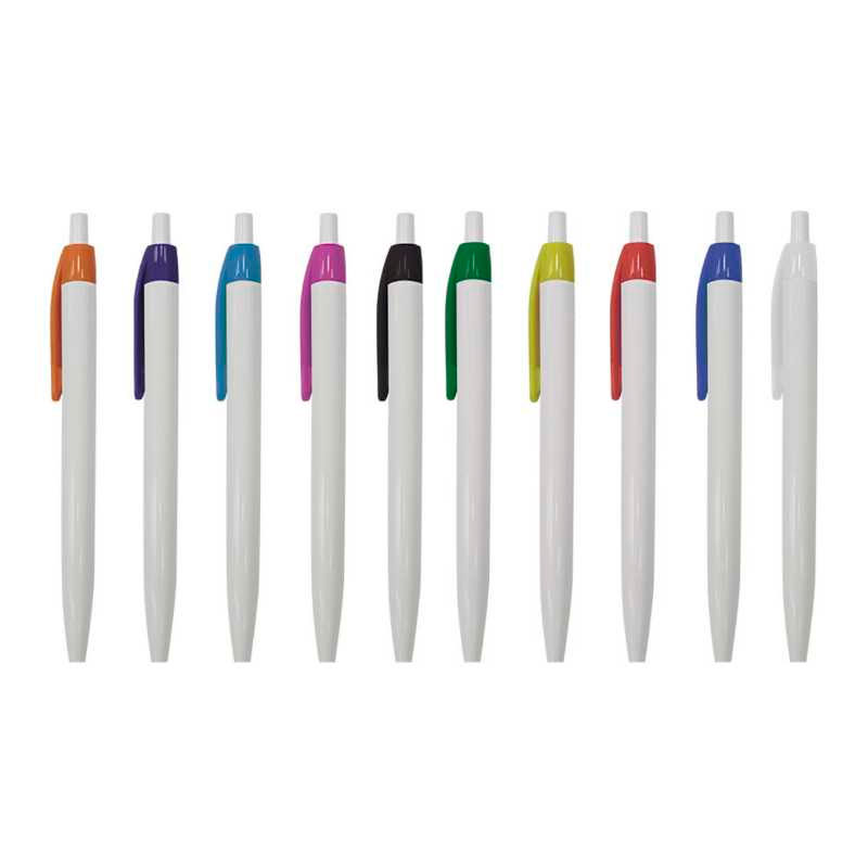 Características: Lapicero de plástico retráctil, con detalle de color, tinta color azul.