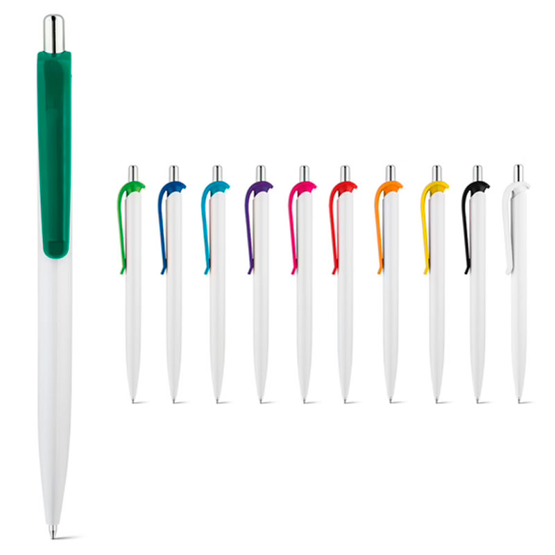Características: ABS con clip de colores. Escritura de color azul. Dimensiones de 10 x 145 mm