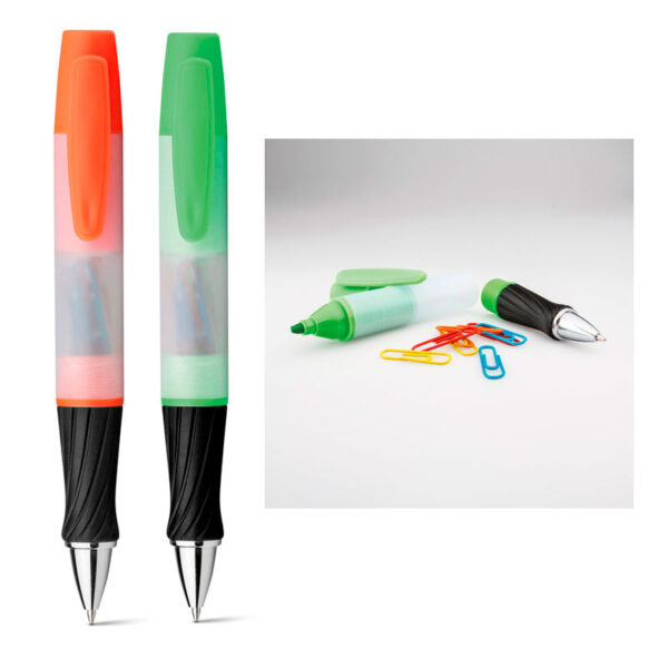 Características: Bolígrafo con acabado metalizado que dispone de mecanismo de giro, clip y puntero